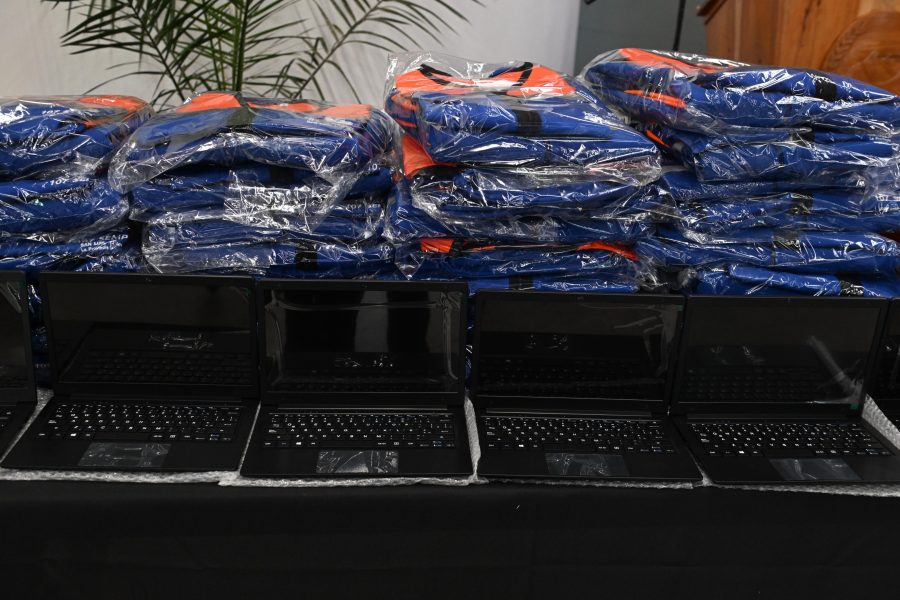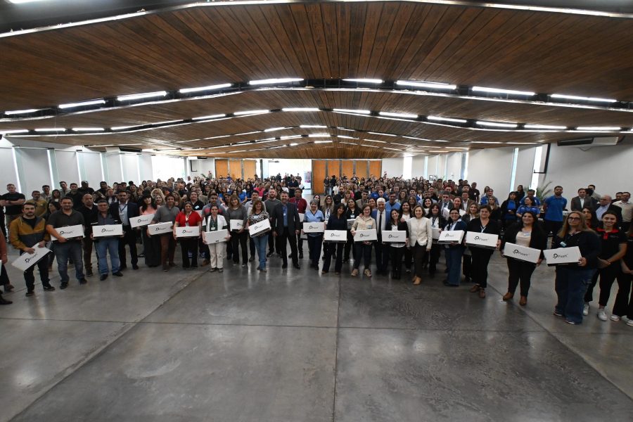 En un acto en el salón Malvinas Argentinas, el gobernador Claudio Poggi entregó 307 notebooks a trabajadores de centros de salud del departamento Pueyrredón e indumentaria a personal del Sempro, una acción para continuar fortaleciendo el equipamiento general del sistema sanitario público.