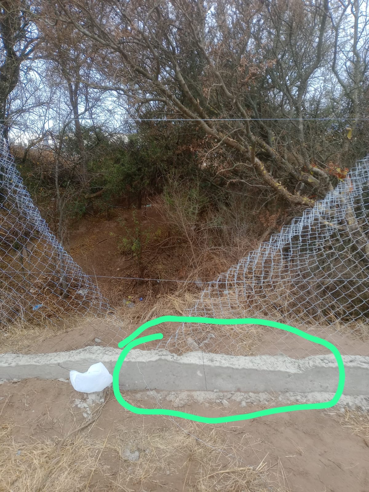El alambre que separa el gran predio de la escuela Agraria, ubicado en la intersección de la ex ruta7 y ruta 2B, frente del barrio La Ribera, con el Barrio Unión que esta del costado oeste de la ruta 2B.