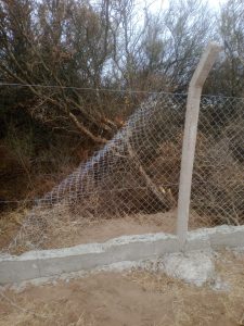 La obra no está terminada y ya es la segunda vez que rompen y roban el tejido. Cuando observamos en el lugar lo sucedido, también notamos que el trabajo que están realizando está muy desprolijo, mal tomado los niveles, como dijo un alumno que nos acompañaba “esto es un mamarracho igual a la obra que están haciendo en el establecimiento, es la sala de apicultura un asco y se lo digo yo que algo se, porque le ayudo a mi papa en la construcción”. No ingresamos en la ampliación, pero por los comentarios esta igual de desprolijo. La pregunta es quien controla esta obra.