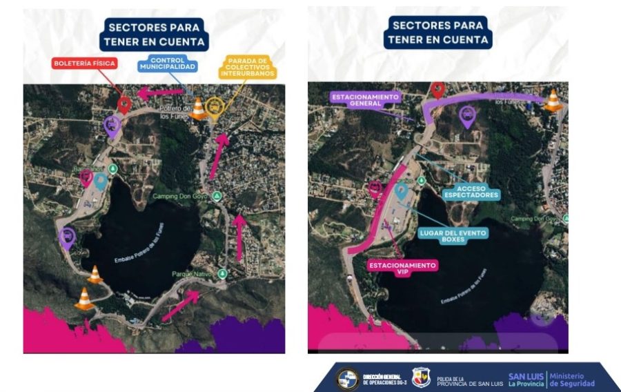 Los ingresos habilitados a Potrero de los Funes serán por ruta provincial 18, el camino del Mirador Potrero – La Punta y la localidad de El Volcán. En esos accesos y en distintos puntos estratégicos se desplegarán controles de alcoholemia, tareas de prevención y ordenamiento de tránsito.