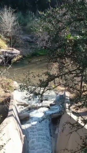 Se nos ocurrió cruzar el puente colgante al otro lado y recorrimos un bosquecito hasta llegar a esto: la desembocadura de residuos de alguna empresa al Rio V.