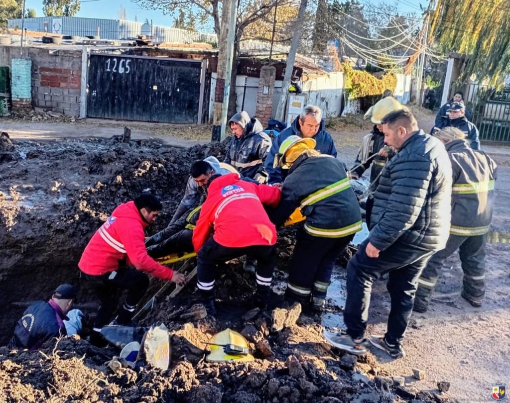 Un empleado de la empresa SerBa fue rescatado este martes por la mañana luego de quedar atrapado en un pozo mientras realizaba tareas de mantenimiento sobre una cañería principal. El hecho ocurrió en avenida Raúl Alfonsín, entre Chacho Peñaloza y Catamarca, en la ciudad de San Luis.