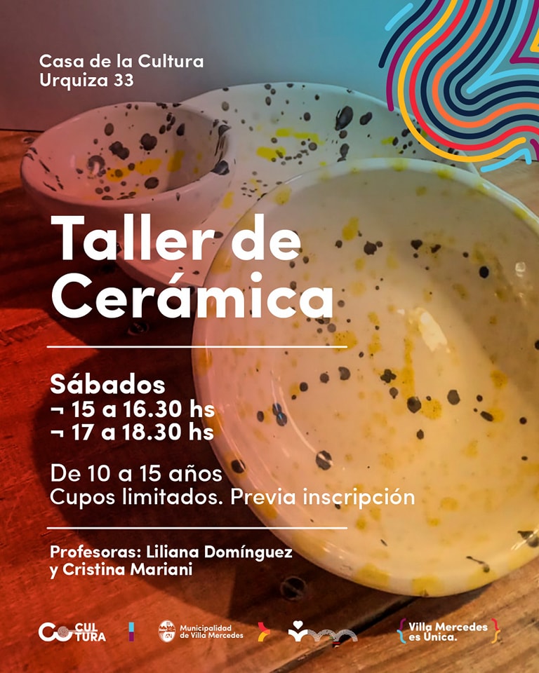 A partir del sábado 14 de junio comenzará un nuevo espacio artístico destinado a adolescentes en Casa de la Cultura. Se trata del Taller de Cerámica, que estará a cargo de las docentes Liliana Domínguez y Cristina Mariano, y se dictará todos los sábados en dos turnos: de 15 a 16:30 y de 17 a 18:30 horas.