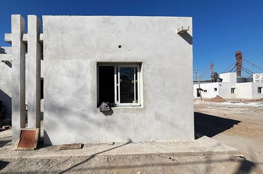 En las viviendas más avanzadas se trabaja actualmente en la colocación de aberturas, pisos y revestimientos de baños y cocinas. Por su parte, las unidades más recientes se encuentran en etapas de terminaciones, con tareas de revoque grueso y fino en exteriores, colocación de fajas para carpetas y premarcos.