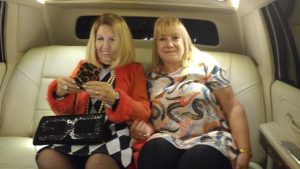 Titi y su amiga Cristina en la limusina camino a la entrega del premio Juan Pascual Pringles