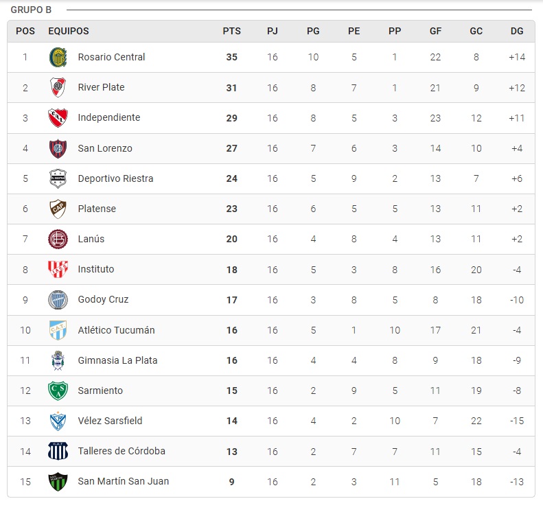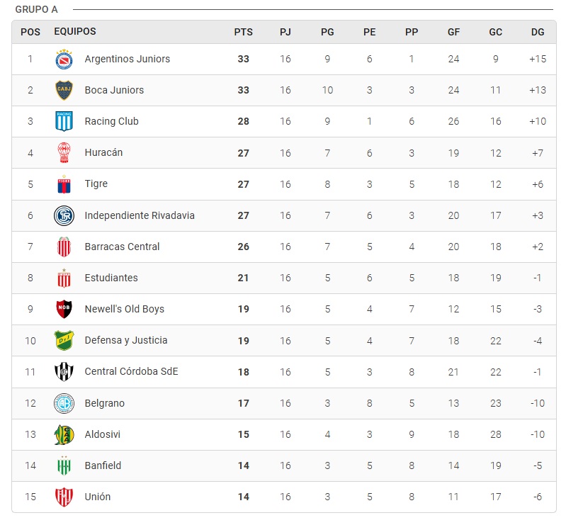 De esta manera, los ocho clasificados de la Zona A son: Argentinos Juniors, Boca Juniors, Racing, Huracán, Independiente Rivadavia, Barracas Central y Estudiantes. Y en la Zona B pasaron: Central, River, Independiente, San Lorenzo, Riestra, Platense, Lanús e Instituto.
