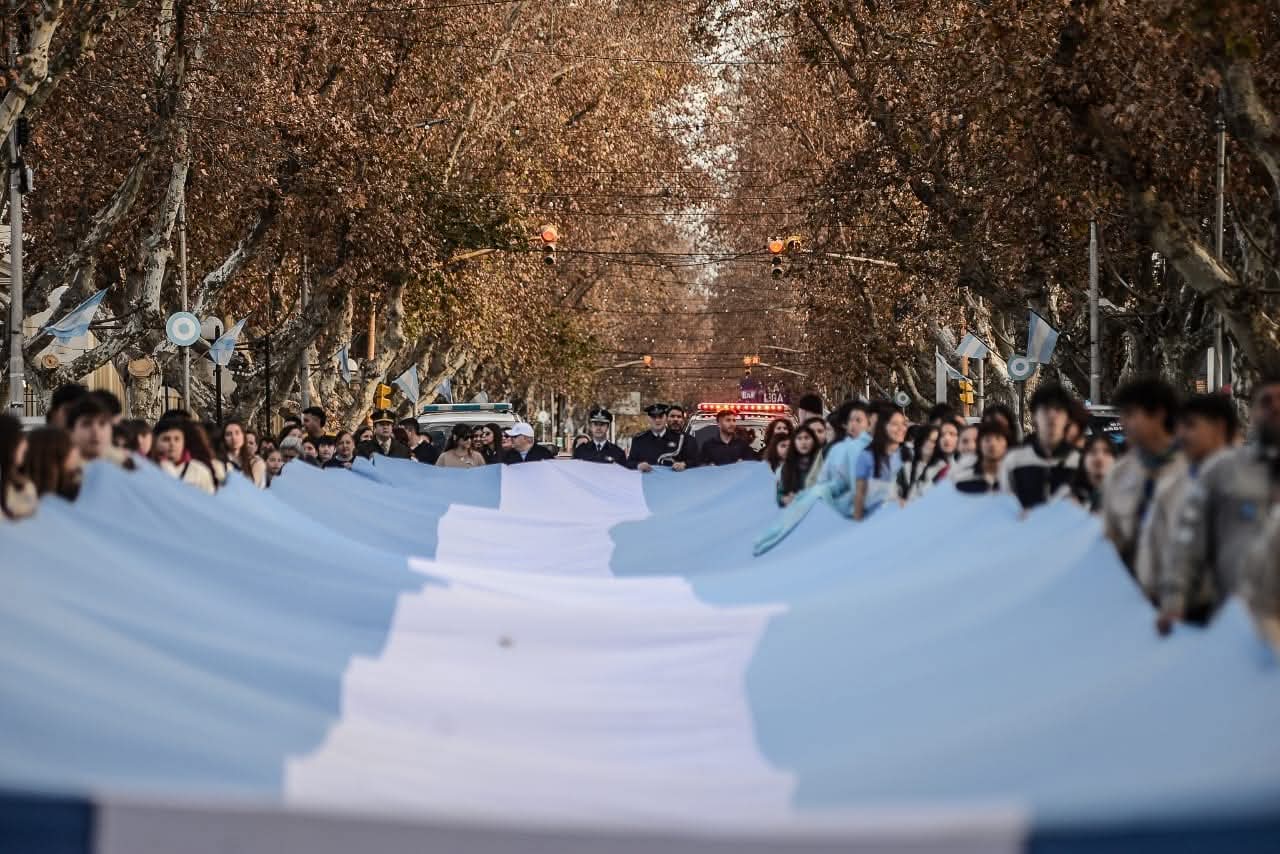 Villa Mercedes vivió una jornada cargada de emoción y espíritu patriótico en la antesala del 9 de Julio. Este lunes por la tarde, cientos de vecinos, agrupaciones e instituciones participaron de la primera Caminata por la Patria, una iniciativa que unió a generaciones enteras bajo una misma enseña: una bandera argentina de 200 metros que recorrió el centro de la ciudad de vereda a vereda.