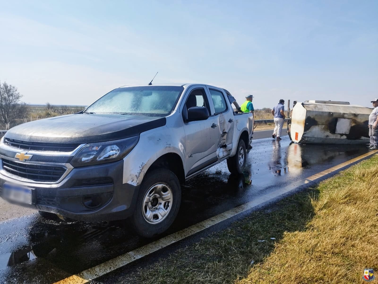 En ese lugar, un hombre de 46 años de edad que conducía una camioneta Chevrolet S10 con acoplado cisterna, perdió el control del vehículo, provocando el desprendimiento y vuelco del acoplado, lo que produjo el derrame de combustible inflamable sobre la carpeta asfáltica.