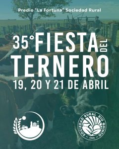 “El viernes comienza la 35 Fiesta del Ternero en la Sociedad Rural Rio V, será el ingreso de animales para la premiación y el remate que será el sábado después de la inauguración oficial, asistirán las máximas autoridades gremiales de CRA y Cartez, viernes y sábado ingreso libre, el domingo $3000 para la jineteada con el campeón de Jesús Maria”.