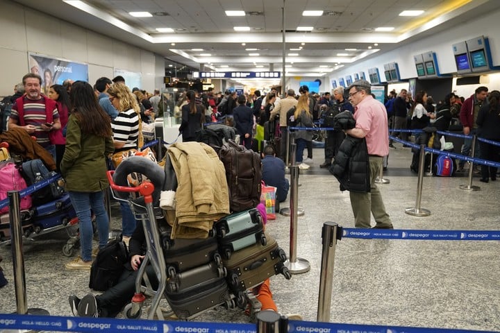 Entre lunes y martes, fueron 61 los vuelos cancelados y hubo más de 12 mil damnificados. Los pasajeros que estaban varados en la terminal porteña buscaban respuestas en los mostradores y algunos llegaron a pasar la noche en la terminal, a la espera de una respuesta.